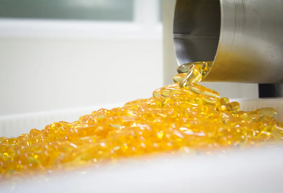 We offer softgels in a range of shapes and colors, made with various shell formulations such as vegetarian, fish-based, bovine, and porcine. Additionally, we provide enteric coating options.